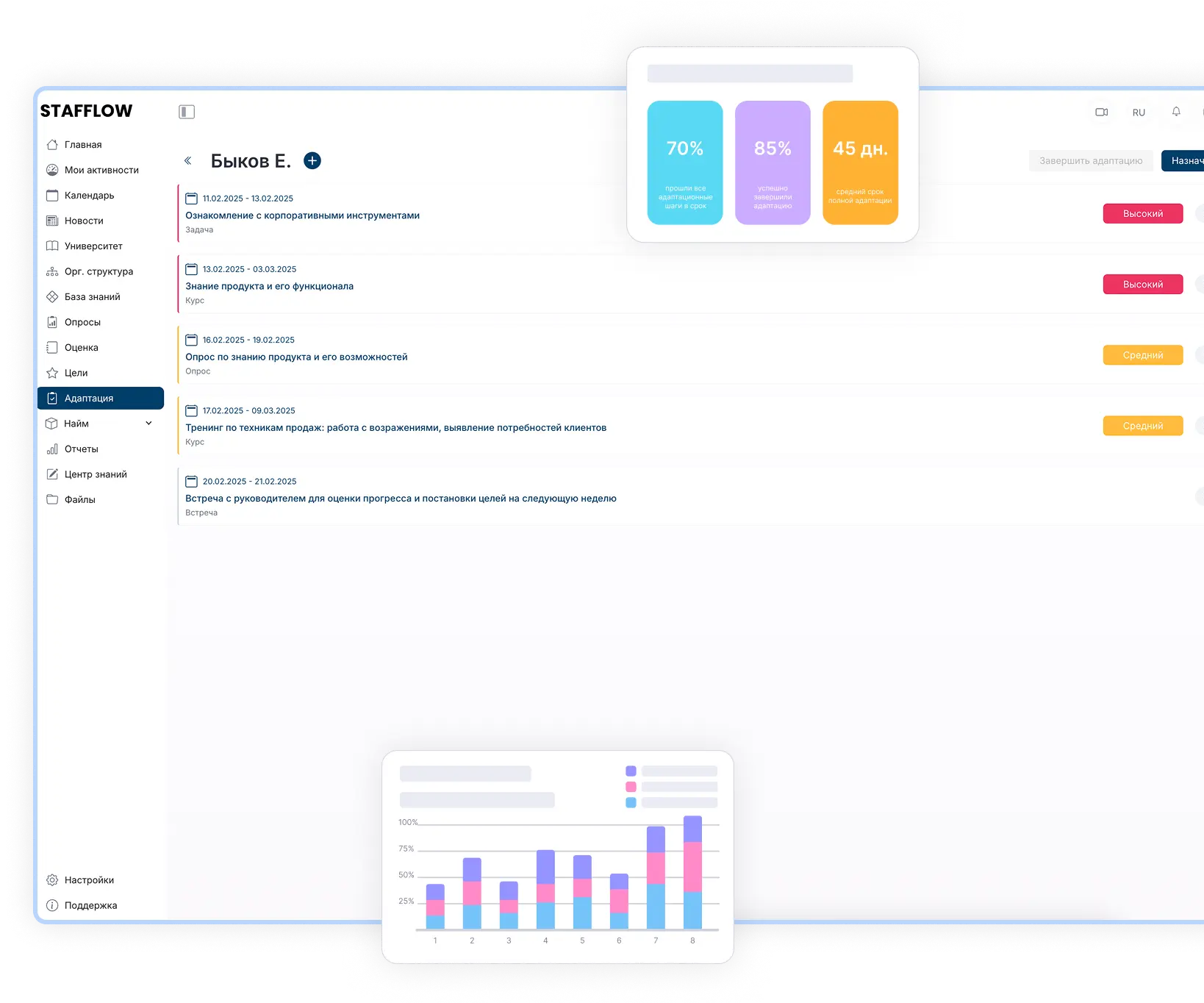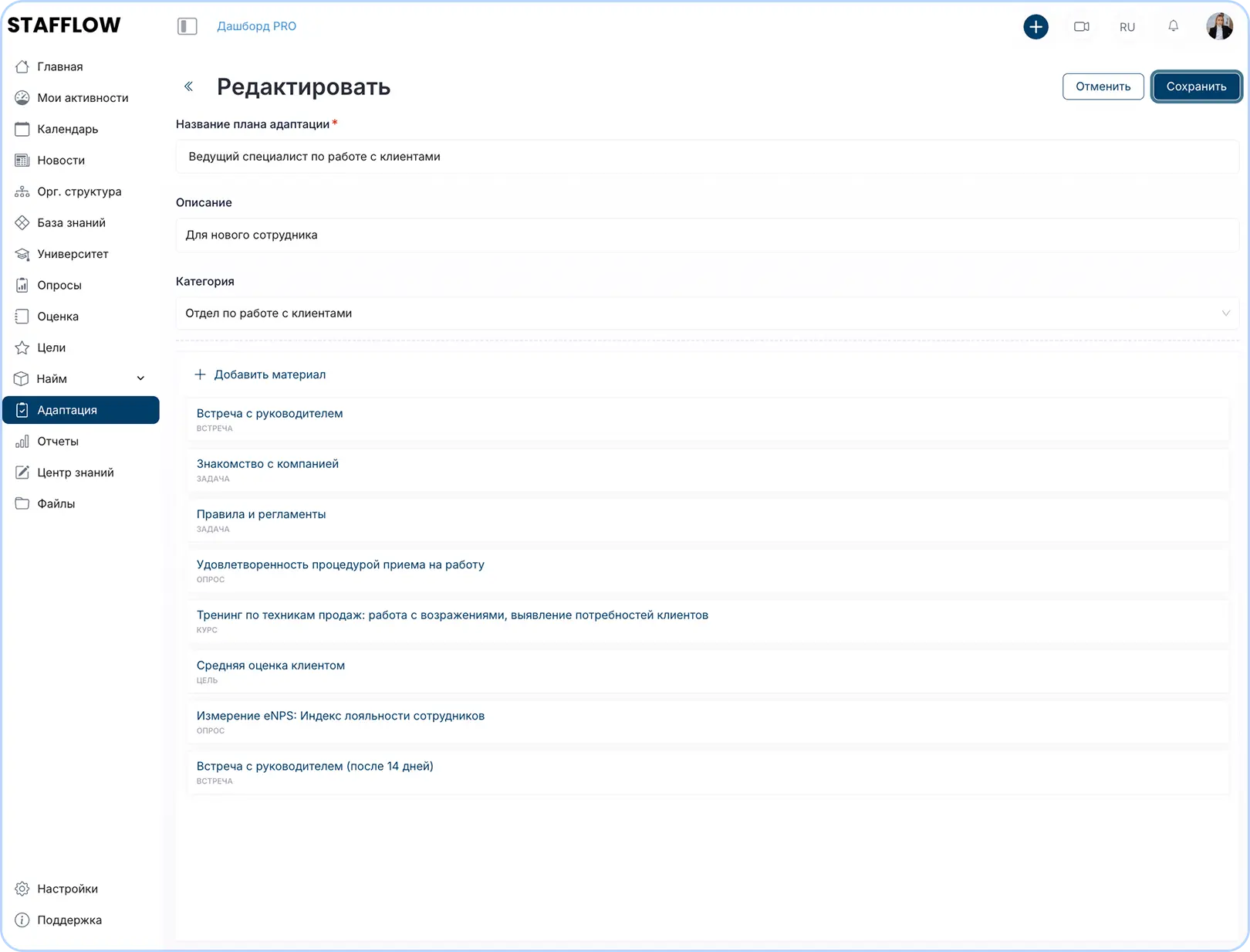 Персонализированные программы – создавайте индивидуальные планы адаптации для каждой роли и отдела
