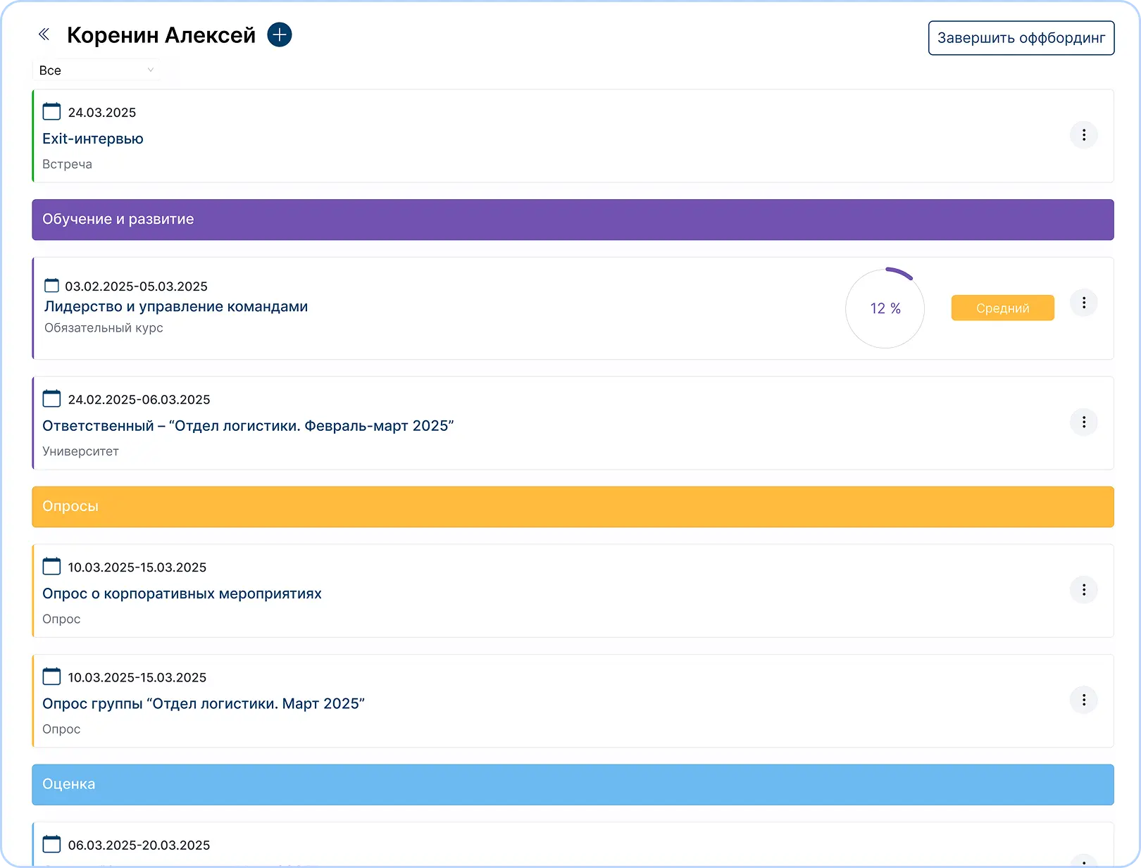 - плавный оффбординг с сохранением знаний и снижением рисков
