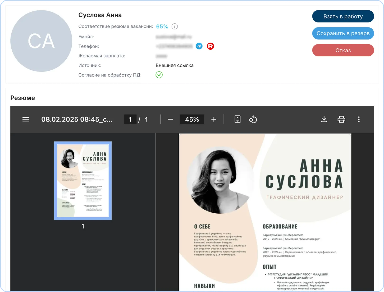 Централизация данных – все коммуникации и данные о кандидатах собраны в одном месте