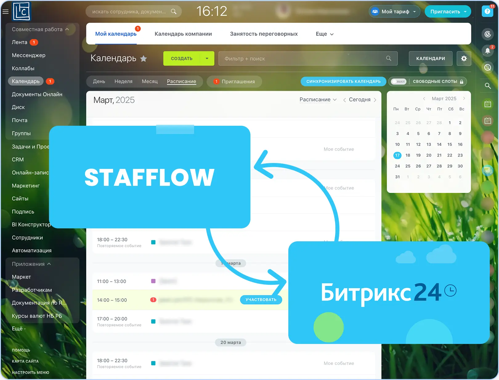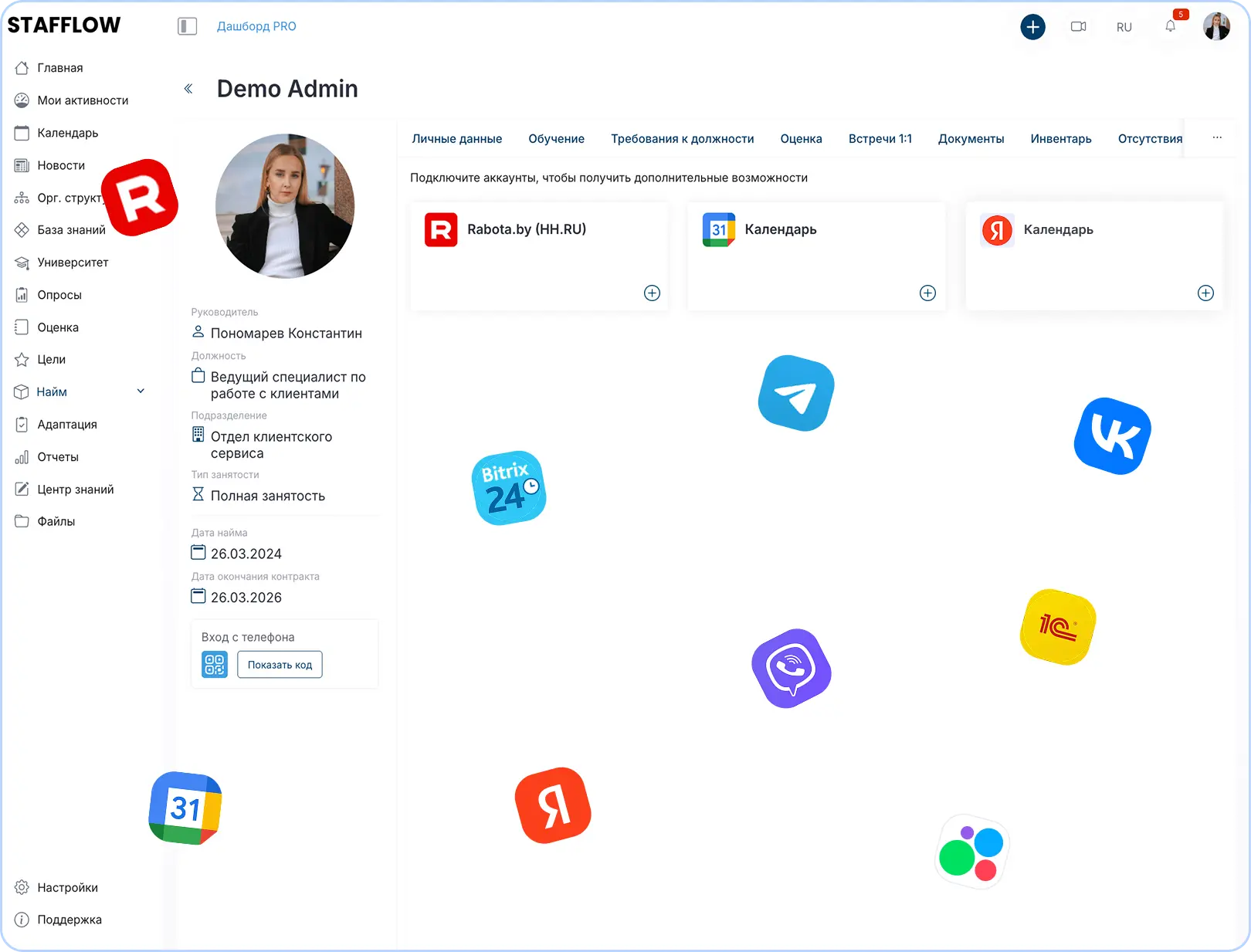 Доступ к функционалу Stafflow прямо из интерфейса Битрикс24