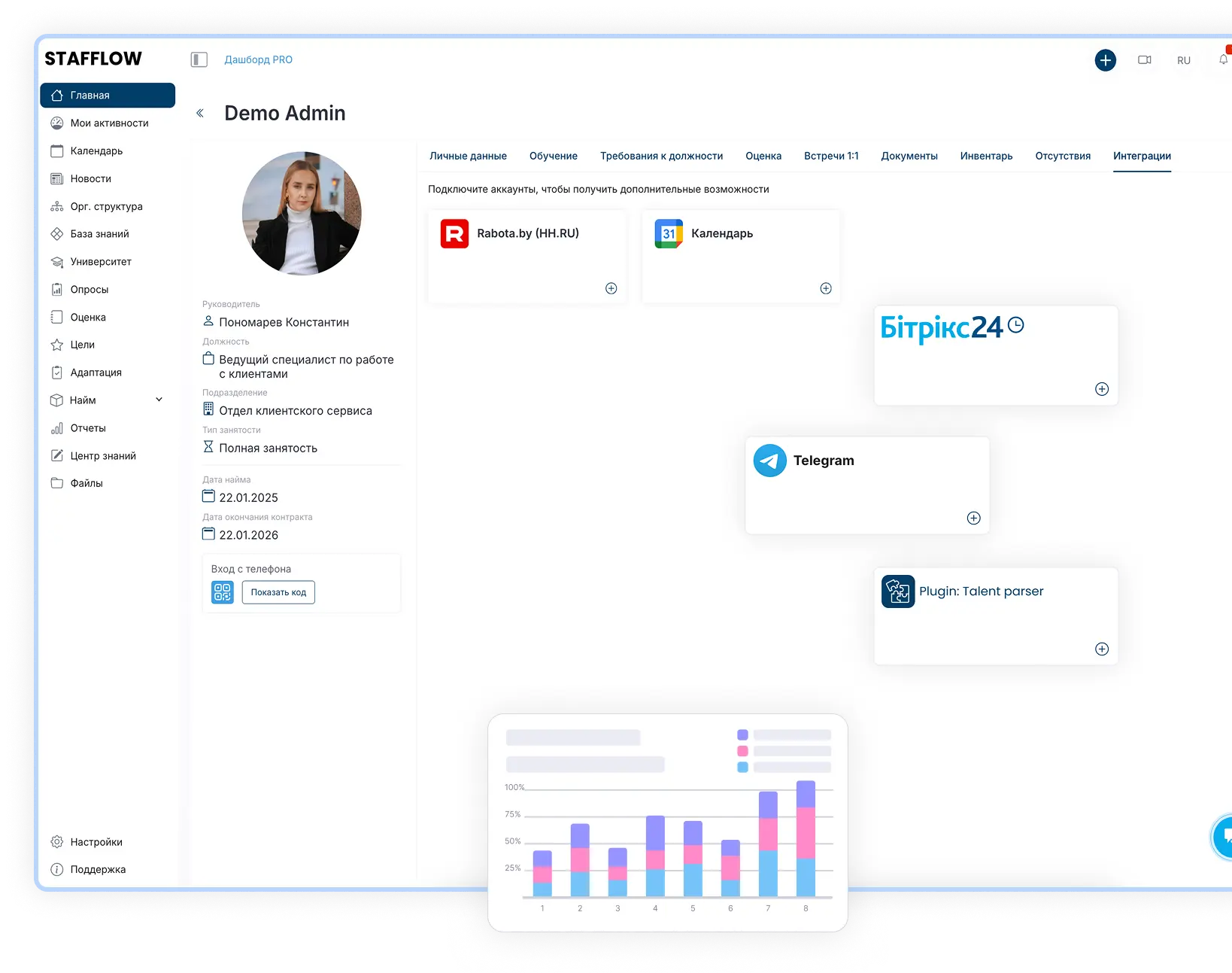 Интеграция Stafflow с вашими системами по индивидуальному запросу – быстро и надёжно!