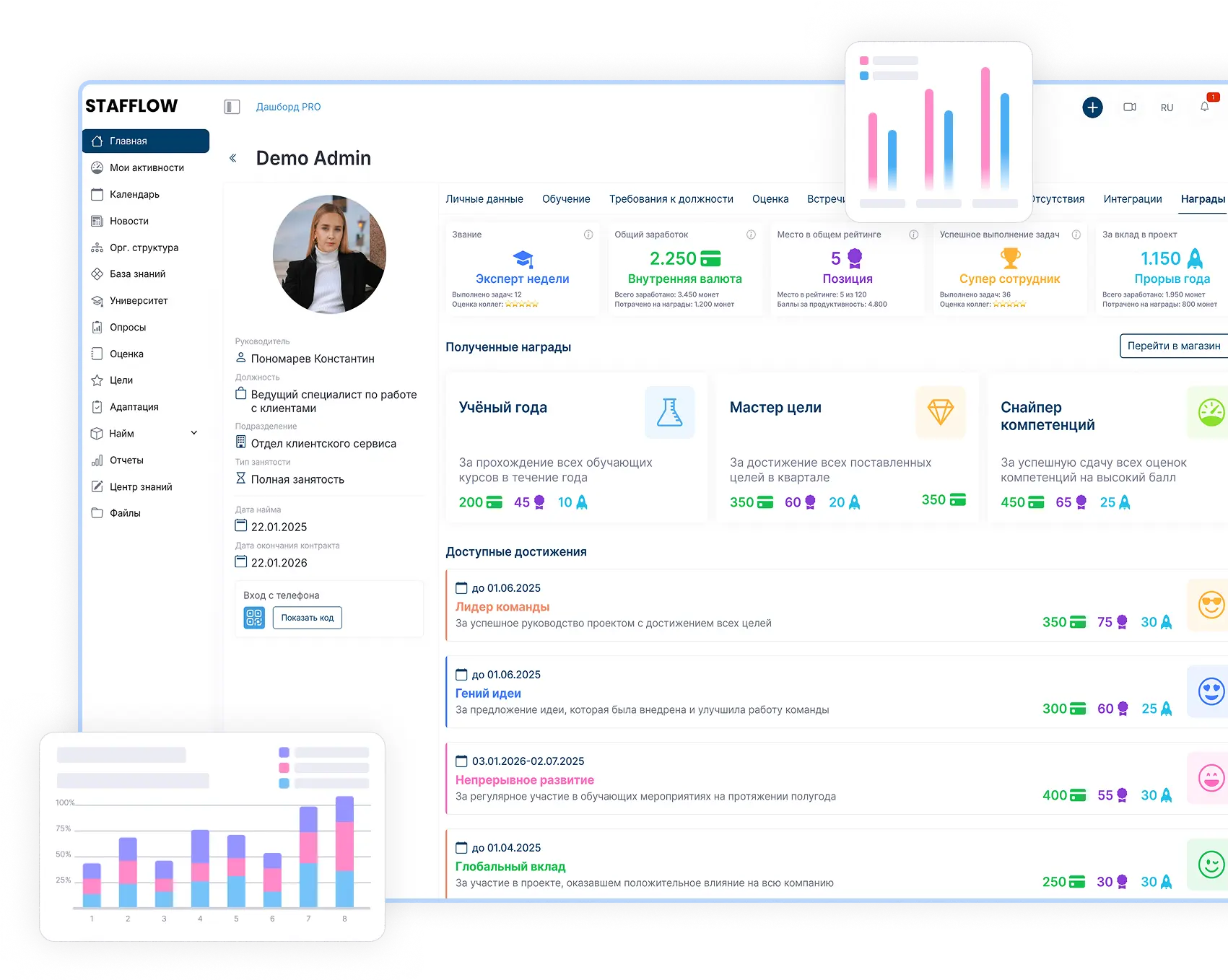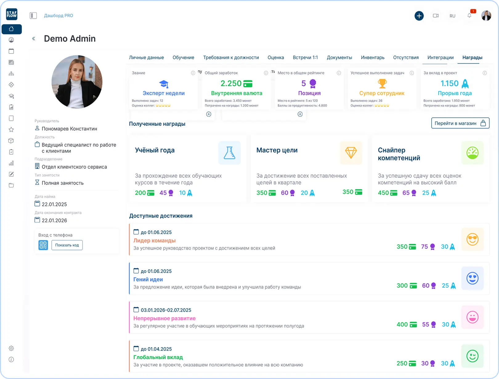 Автоматическое начисление – система автоматически присуждает баллы за выполнение задач, успешные проекты и участие в корпоративных инициативах