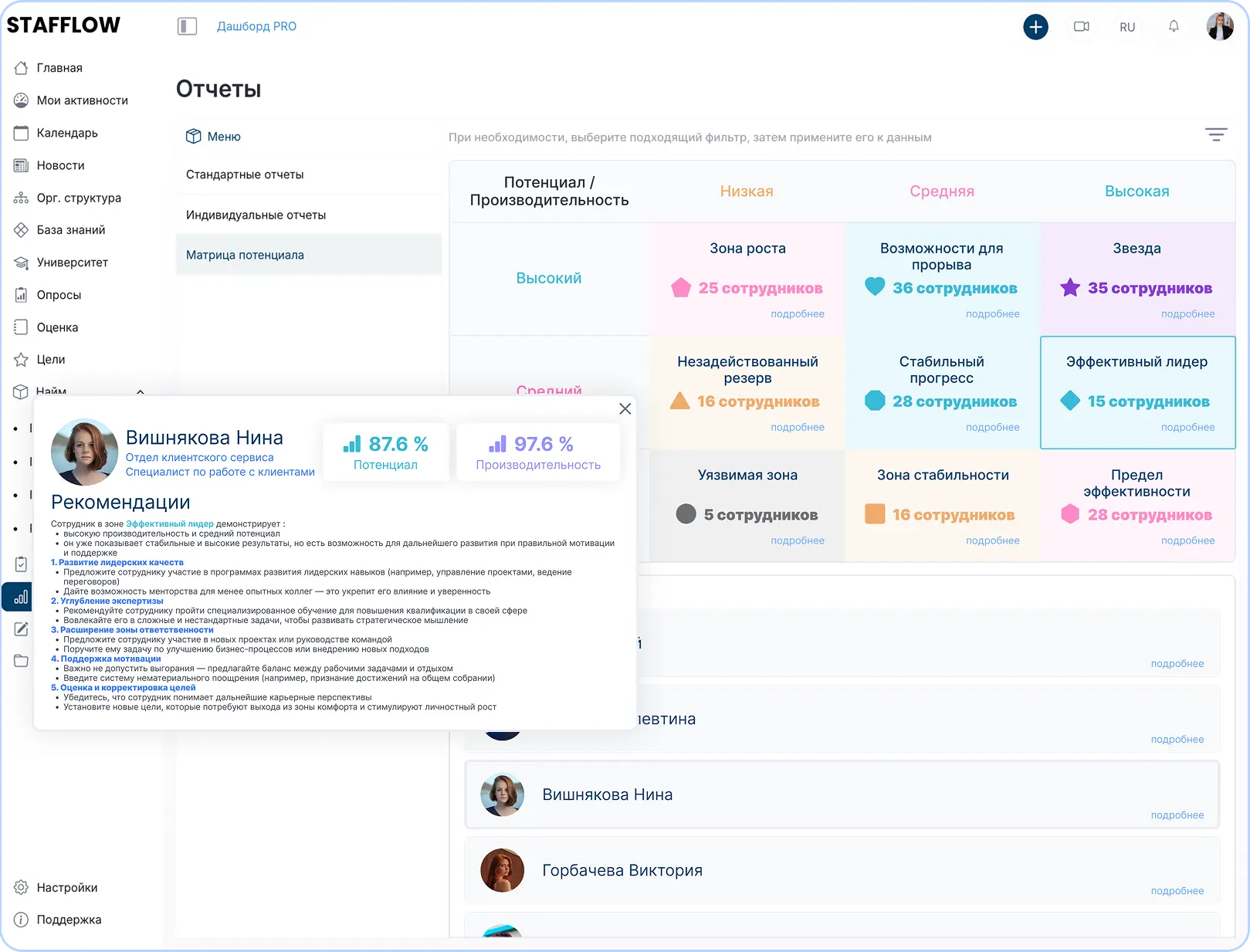 Автоматизированный анализ – система предлагает позицию сотрудника в матрице на основе данных