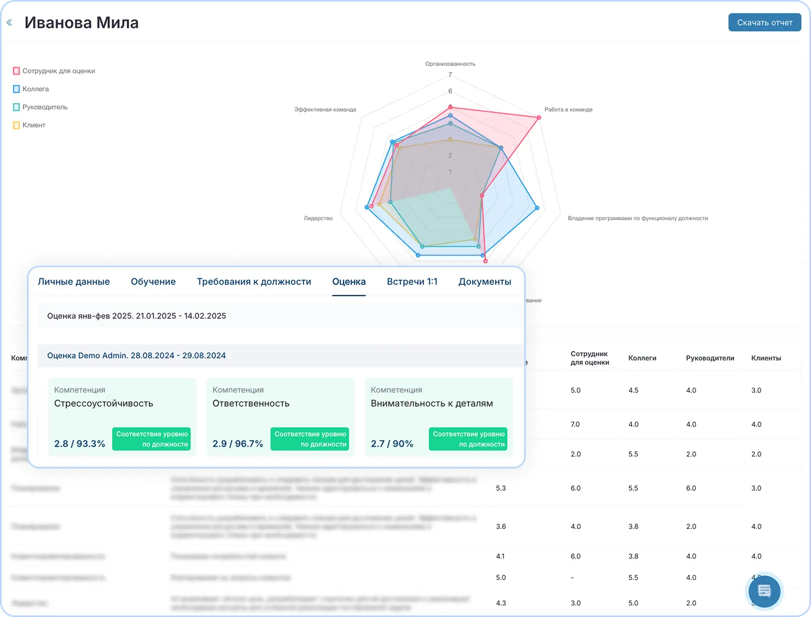 Прозрачность для сотрудников – сотрудники видят свои компетенции и понимают, какие навыки нужно развивать