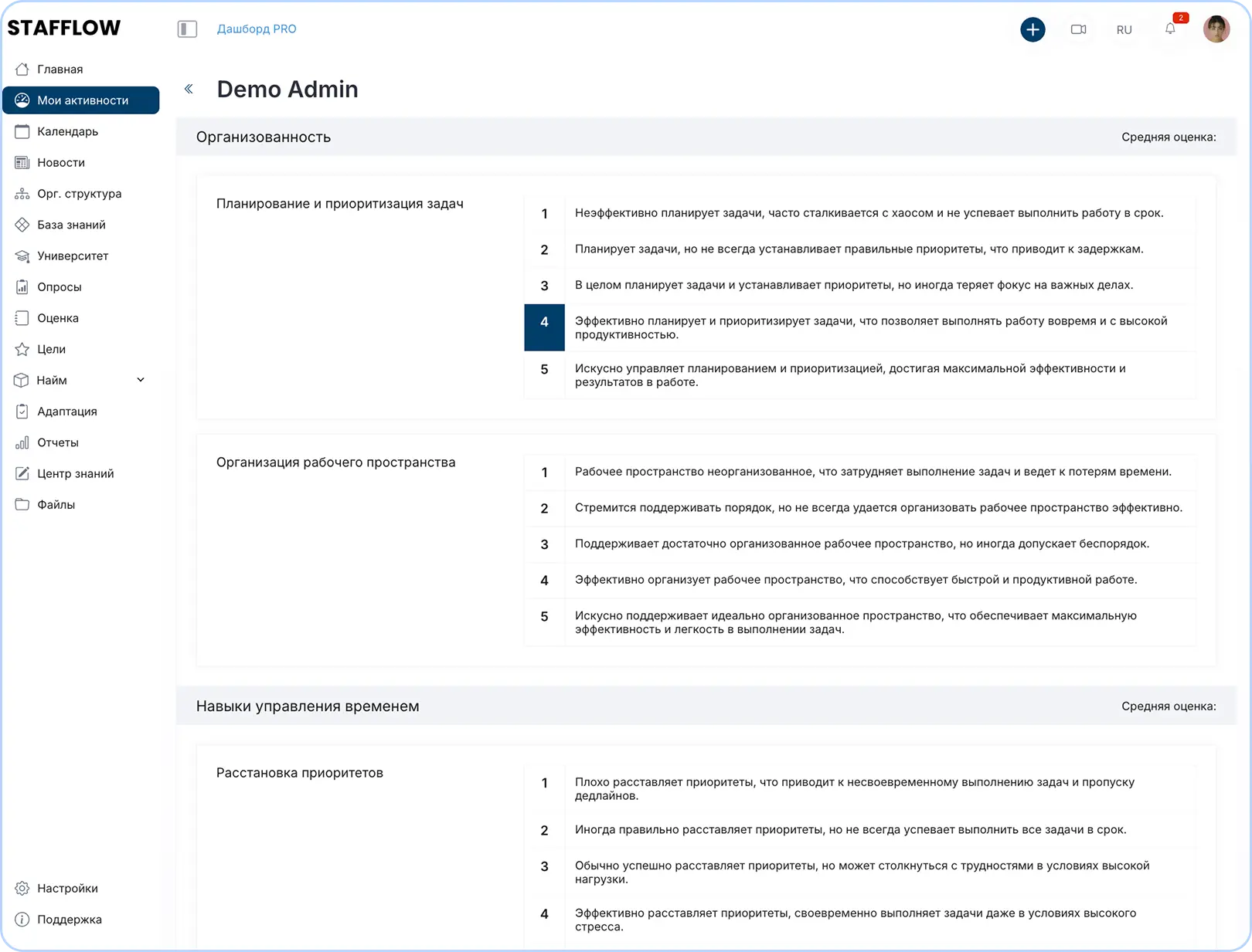 Гибкость и адаптивность – настройка критериев оценки с учётом корпоративных стандартов, целей компании и должностных требований